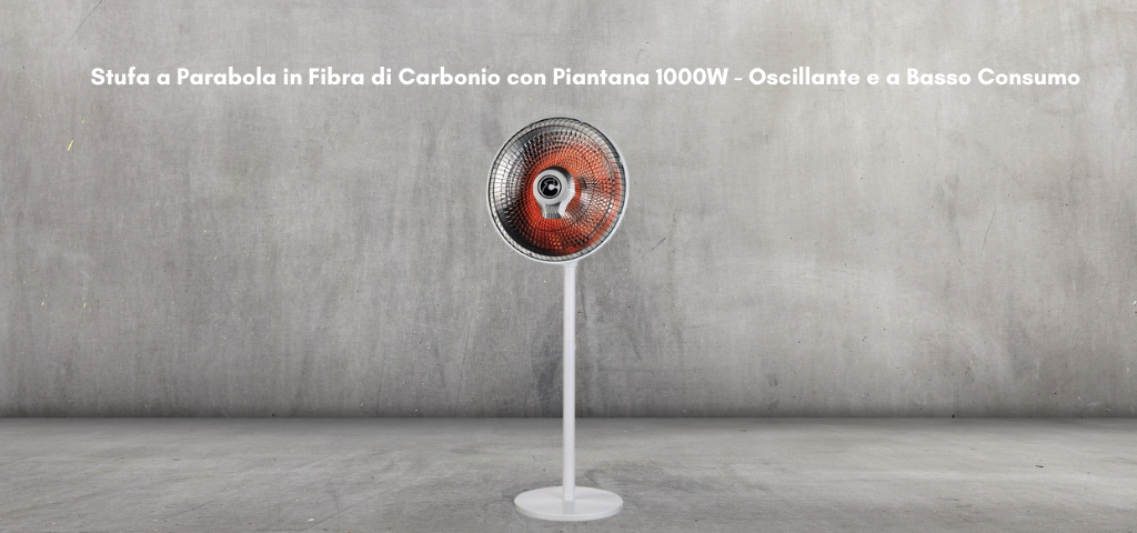 Stufa a Parabola in Fibra di Carbonio con Piantana 1000W - Oscillante e a Basso Consumo