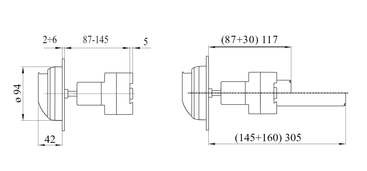 Il campo di regolazione minima è ottenibile tagliando l’asta in dotazione. Correttamente installato garantisce il grado di protezione IP65.