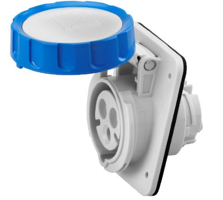 PRESA FISSA DA INCASSO A 10° HP - IP66/IP67 - 2P+T 16A 200-250V 50/60HZ - BLU - 6H - CABLAGGIO A VITE