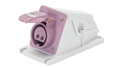PRESA FISSA DA PARETE A 90° - IP44 - 2P 16A 20-25V 50-60HZ - VIOLA - S.R. - CABLAGGIO A VITE