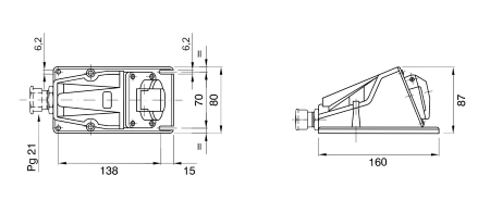 Presa industriali da 16A in versione fissa da pannello a 90° con protezione IP44. Resistenza agli agenti atmosferici e chimici. 2P