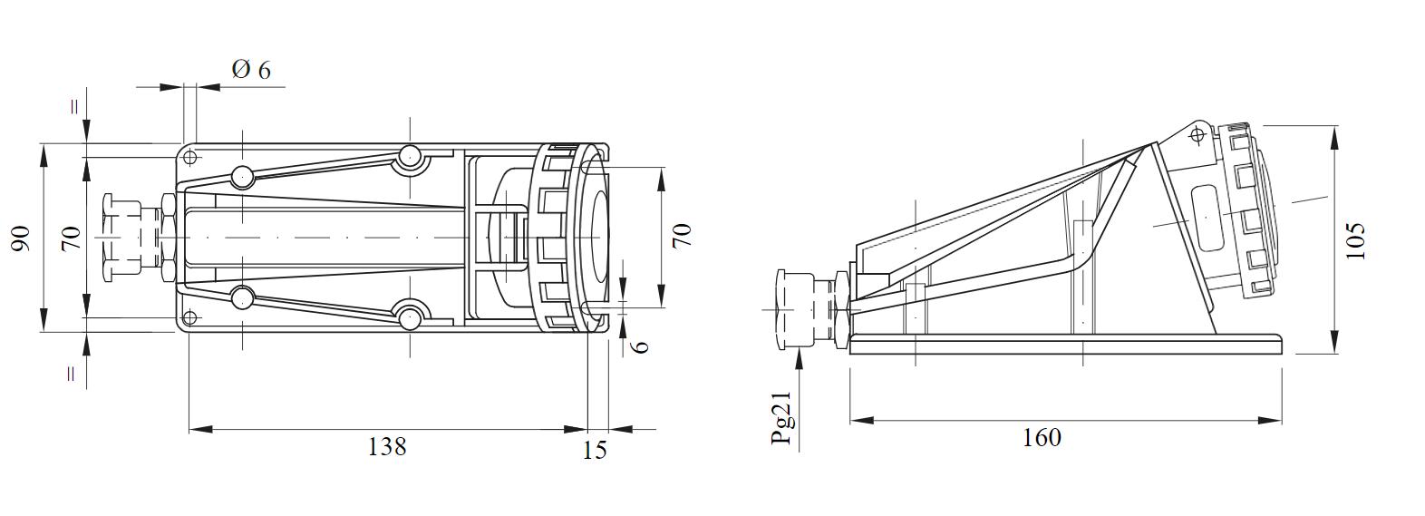 Presa fissa da parete a 90° stagna, cablaggio a vite.