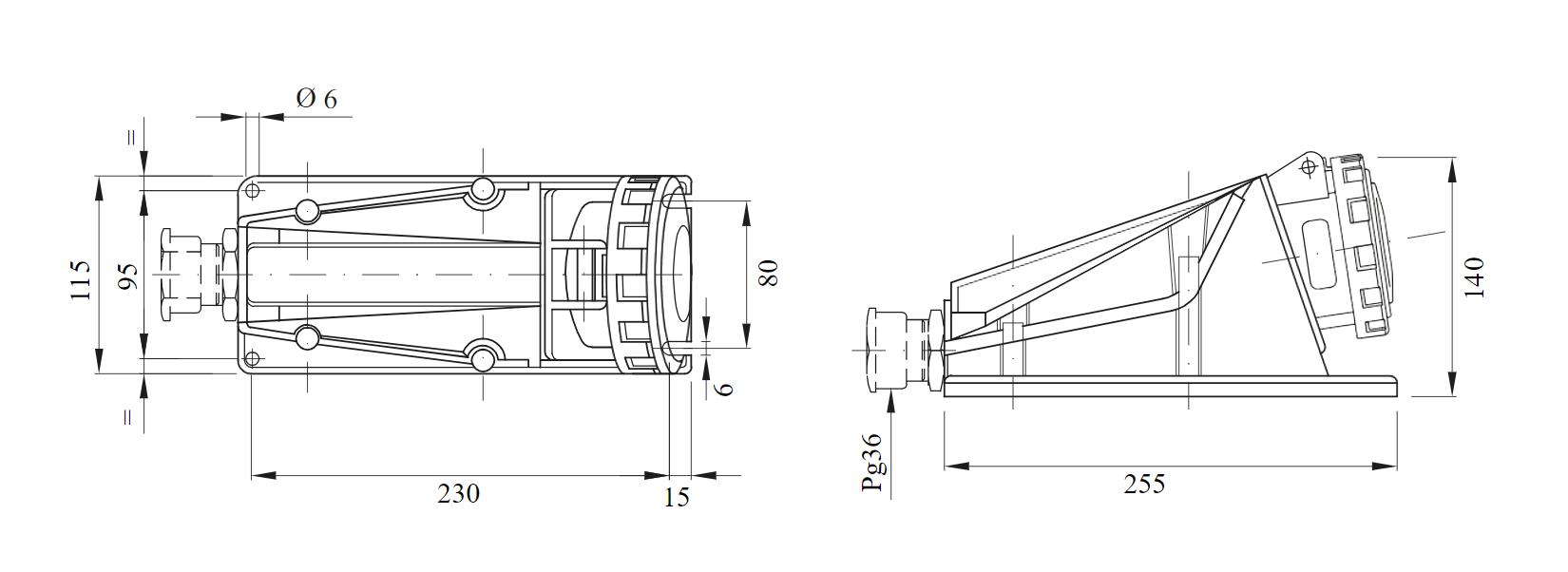 PRESA FISSA DA PARETE A 90° - IP67 - 3P+N+T 63A 380-415V 50/60HZ - ROSSO - 6H - CABLAGGIO A VITE