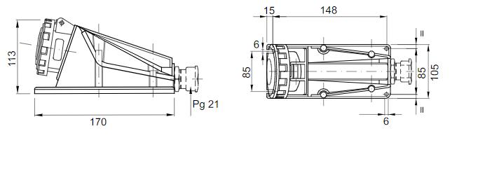 PRESA FISSA DA PARETE A 90° - IP67 - 3P+T 32A 380-415V 50/60HZ - ROSSO - 6H - CABLAGGIO A VITE