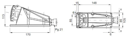 Presa fissa da parete a 90° stagna, cablaggio a vite.