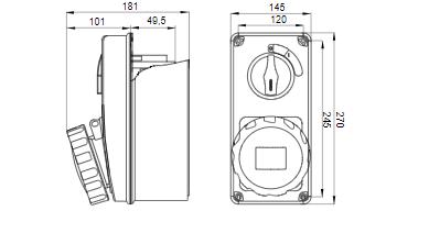PRESA FISSA INTERBLOCCATA VERTICALE - CON FONDO - SENZA BASE PORTAFUSIBILI - 3P+N+T 63A 346-415V - 50/60HZ 6H - IP67
