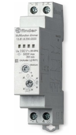 Il Dimmer 23-204 (Finder 15.81) è un varia luce compatibile con lampade LED dimmerabili e può essere installato nei quadri elettrici