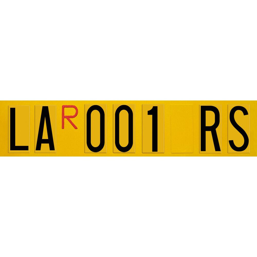 In alluminio. Finitura catarifrangente. Spaziature delimitate per una facile applicazione di lettere e numeri
