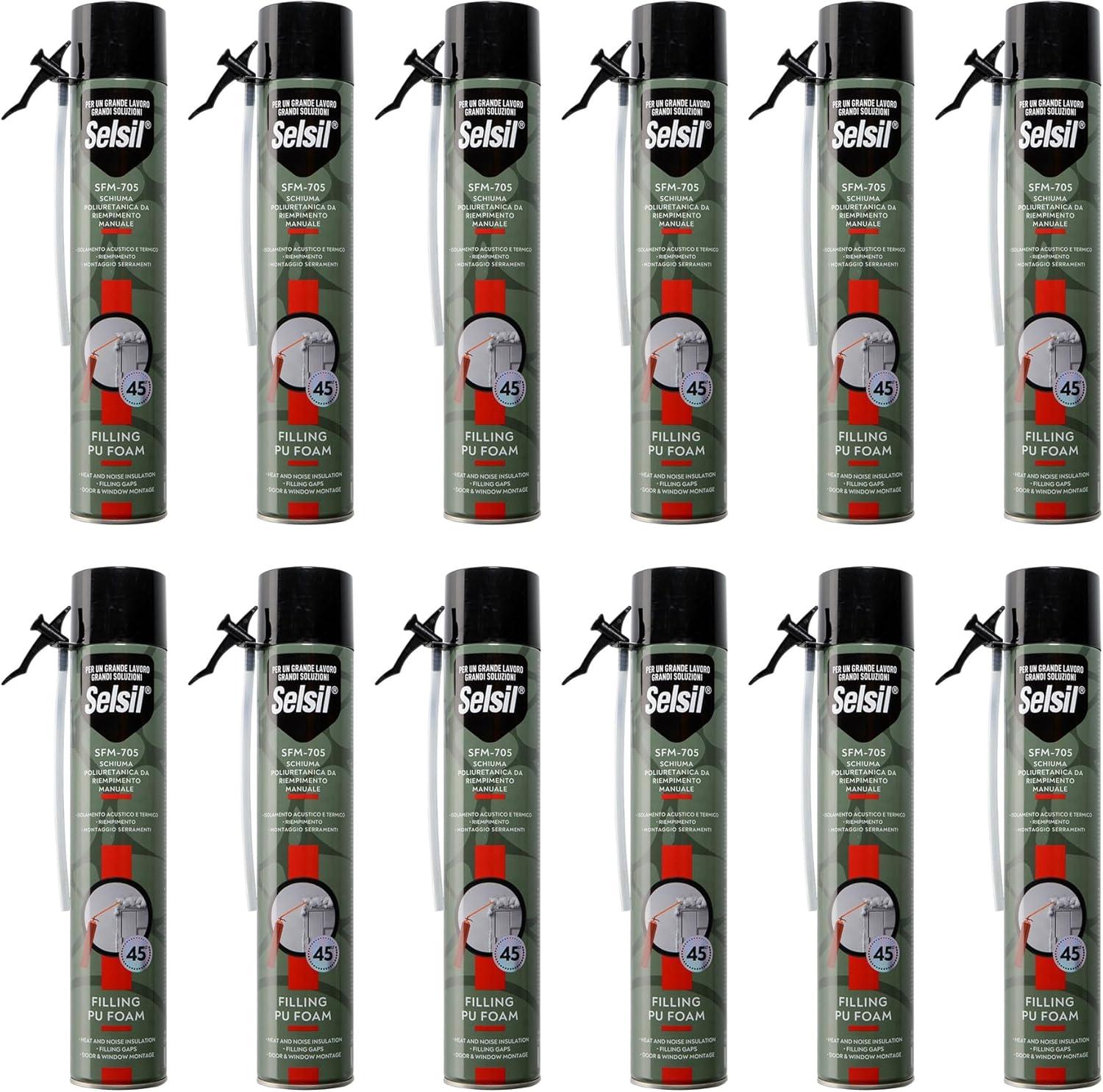 12 X SELSIL SCHIUMA POLIURETANICA UNIVERSALE MANUALE 750 ML