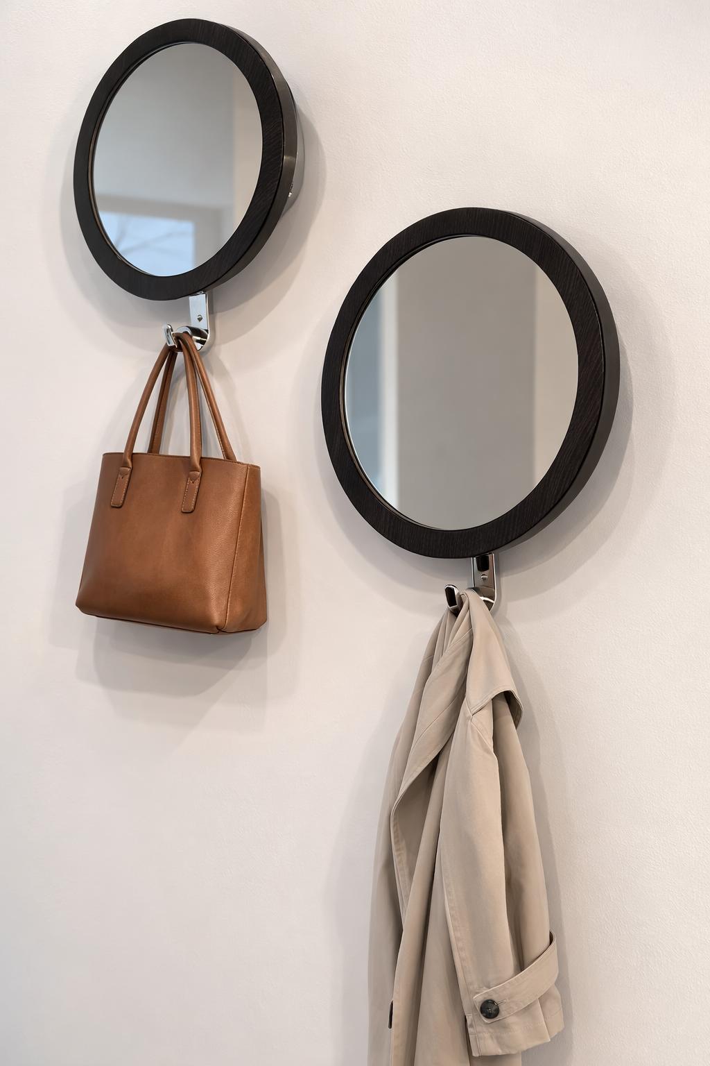 La presenza del gancio inferiore trasforma lo specchio in un elemento multifunzionale, perfetto per appendere giacche, borse o accessori, ottimizzando lo spazio nelle zone di passaggio.