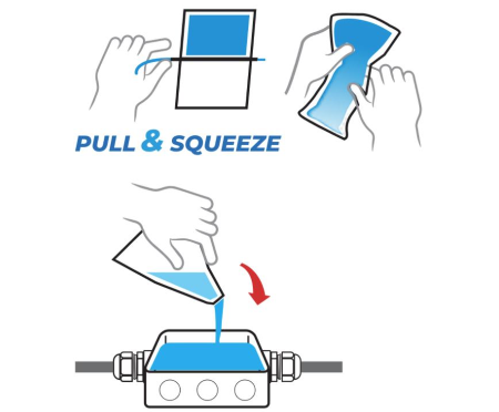 Il gel isolante bicomponente MAGIC-FLUID-420 garantisce un elevato livello di protezione contro la penetrazione di acqua e agenti contaminanti nelle scatole di giunzione e nelle muffole di giunzione per cavi.