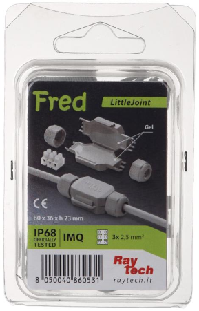 Mini giunto pre-riempito in gel con connettore 3x2.5mmq IP68 Raytech FRED