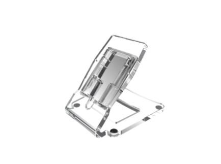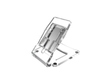 Supporto in plexiglass di spessore 10 mm, fornito con cavo RJ45 bianco e copertura della zona morsetti con lamina in PMMA di colore grigio metallizzato.