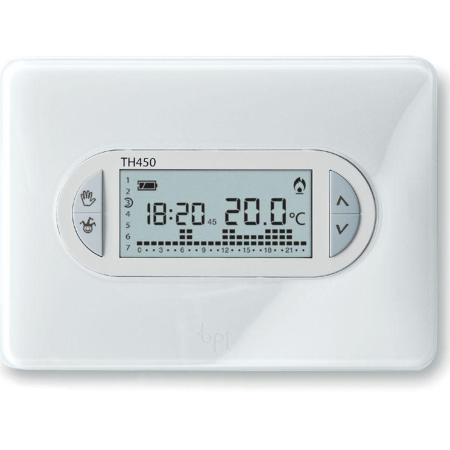 Il cronotermostato BPT TH 450 è stato progettato per garantire condizioni di temperatura ideali in ogni momento della giornata e per ogni giorno della settimana.