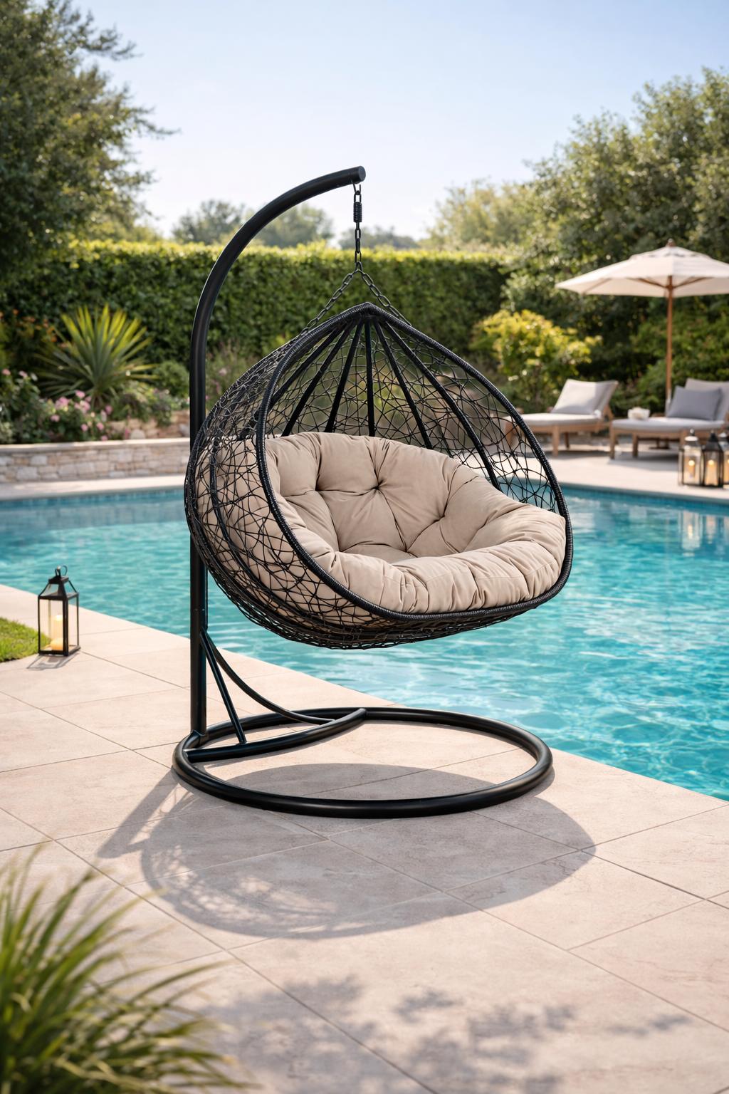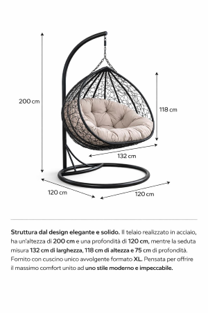 POLTRONA SOSPESA XL 'DOHA' cuscino grigio chiaro formato XL - seduta larga