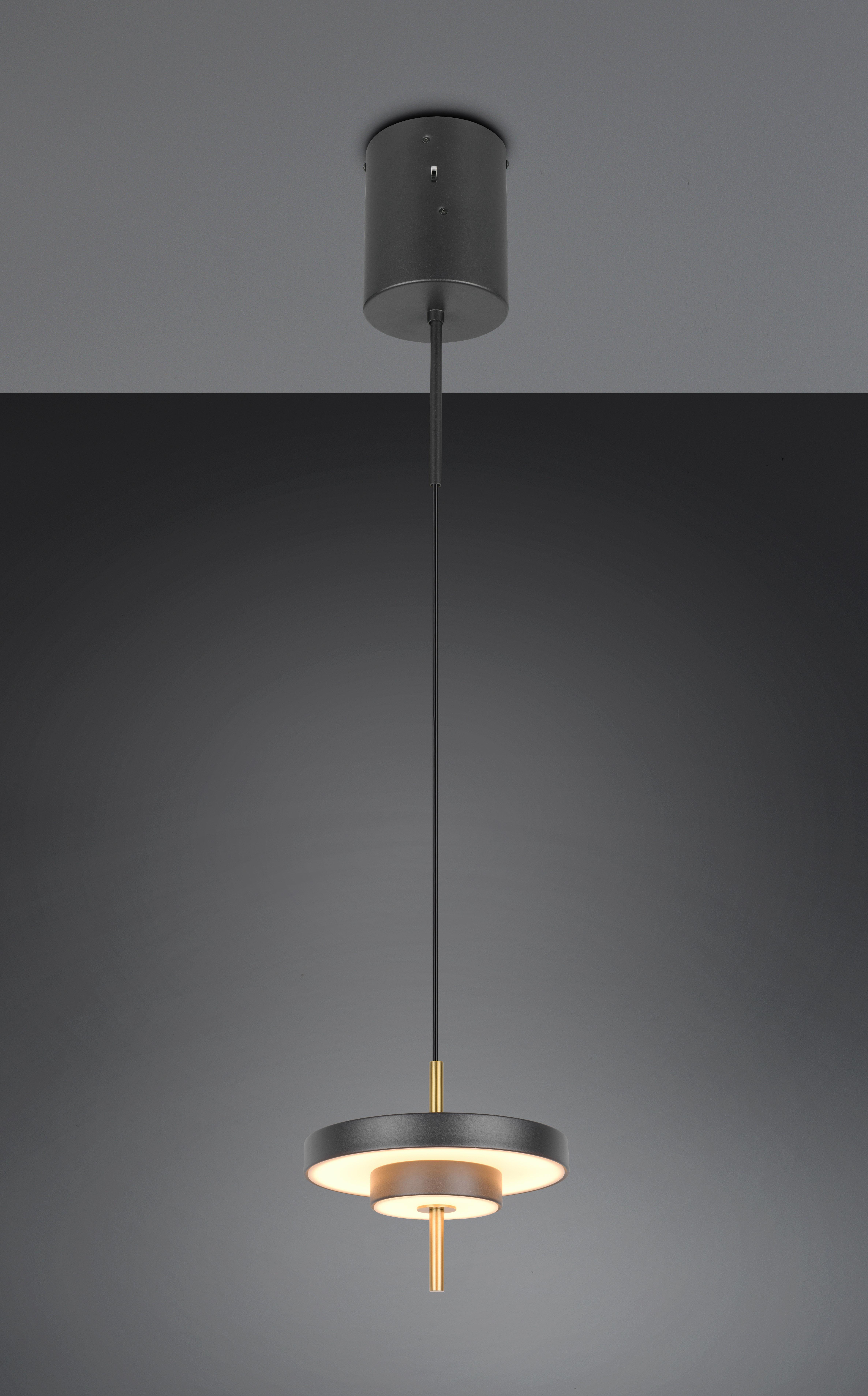 Lampada a sospensione TRIO Leuchten Keaton, LED dimmerabile, nero/oro