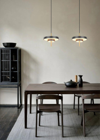 Moderna, purista e tuttavia meravigliosamente discreta: la lampada a sospensione KEATON colpisce per il suo design sofisticato che ricorda dischi dalla luce soffusa che si sovrappongono con stile. Il suo aspetto minimalista è ulteriormente enfatizzato dalle delicate tonalità di colore: un vero e proprio elemento di stile per la zona giorno o la sala da pranzo. KEATON ha molto da offrire anche dal punto di vista tecnico: tramite un pratico DIP SWITCH direttamente sulla lampada, è possibile selezionare in modo flessibile il colore della luce tra bianco caldo, bianco neutro e bianco freddo, a seconda dell'atmosfera che si desidera creare. Anche la luminosità può essere regolata individualmente, semplicemente su tre livelli utilizzando il tradizionale interruttore a parete. Nell'elegante combinazione di colori nero opaco e ottone opaco, KEATON punta sulla riuscita combinazione di metallo di alta qualità, un effetto luminoso discreto ed estetica contemporanea. Inoltre, le lampade sono dotate della moderna tecnologia LED, sinonimo di elevata qualità della luce. Le sorgenti luminose a LED sono caratterizzate da una lunga durata e da una bassa generazione di calore.