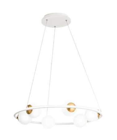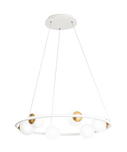 Lampadario Bianco Ottone Cerchio con Sfere Vetro Led 80w 3000k Ball Perenz
