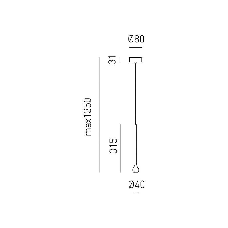 Altezza massima 135 cm (regolabile). Altezza diffusore 31,5 cm. Diametro corpo 4 cm. Il rosone ha un’ altezza di 3,1 per un diametro da 8 cm. Dettagli come nella foto tecnica