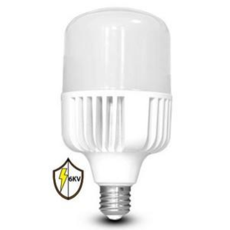 Lampadina LED Duralamp industriale a grande luminosità modello High Power mod.L9040HP2 con potenza di 90W e attacco E40. Forma Bulb in materiale plastico bianco e alluminio con fascio luminoso di 200° e flusso luminoso di 8350 lm. Questa lampadina, ha un rapporto di 95 lm/W. La potenza di 90W equivalente a 445W di una lampada a incandescenza. Lampadina con tecnologia LED SMD e copertura opaca. Le lampadine della famiglia High Power necessitano di funzionare in aree libere, da non utilizzare quindi in corpi illuminanti chiusi. Questo tipo di lampadina particolarmente adatta a essere installata in campane industriali. Questa lampadina inoltre in grado di assorbire fino a 6KV di picchi e sovratensioni ideale per ambienti pubblici.