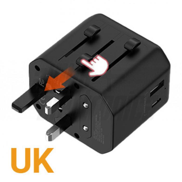 Adattatore universale con presa di ricarica USB-A e USB-C 2,1A max