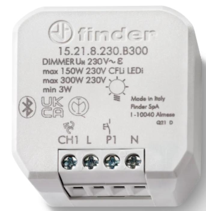 Potenza massima dimmerabile 300 W. LED di segnalazione di stato. Montaggio da incasso (es. scatola tonda Ø 60 mm) .