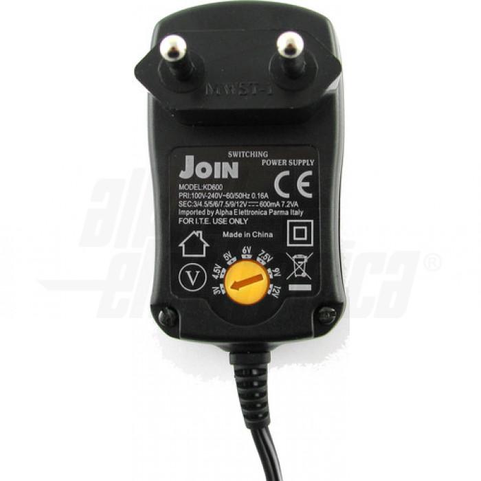 Alimentatore Switching 7,2W - 3/4,5/5/6/7,5/9/12 Vdc - 0,6A - 6 connettori