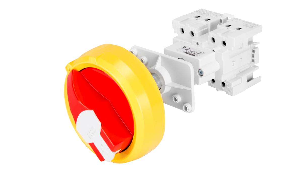 INTERRUTTORE SEZIONATORE ROTATIVO - DA QUADRO - MANOPOLA ROSSA - 3P 5M EN50022 63A