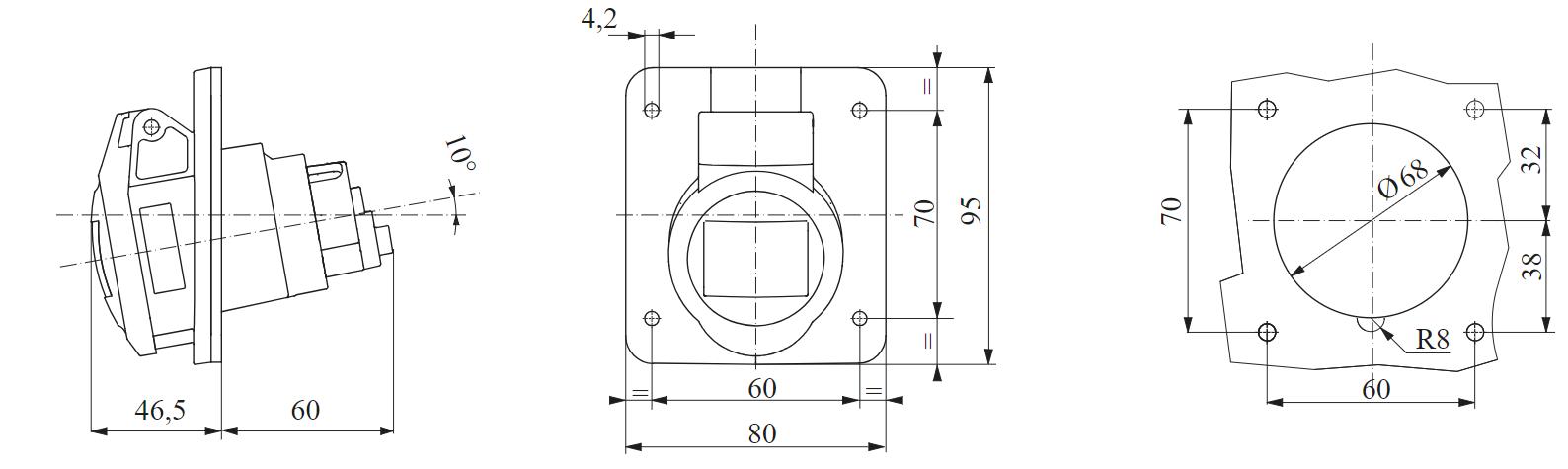 PRESA FISSA DA INCASSO A 10° HP - IP44/IP54 - 3P+T 32A 380-415V 50/60HZ - ROSSO - 6H - CABLAGGIO A VITE