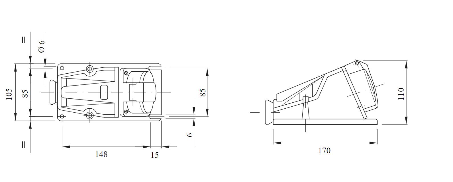 PRESA FISSA DA PARETE A 90° - IP44 - 3P+T 32A 480-500V 50/60HZ - NERO - 7H - CABLAGGIO A VITE