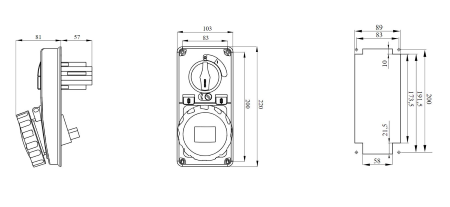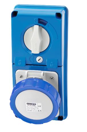 PRESA FISSA INTERBLOCCATA VERTICALE - SENZA FONDO - CON BASE PORTAFUSIBILI - 2P+T 32A 200-250V - 50/60HZ 6H - IP67