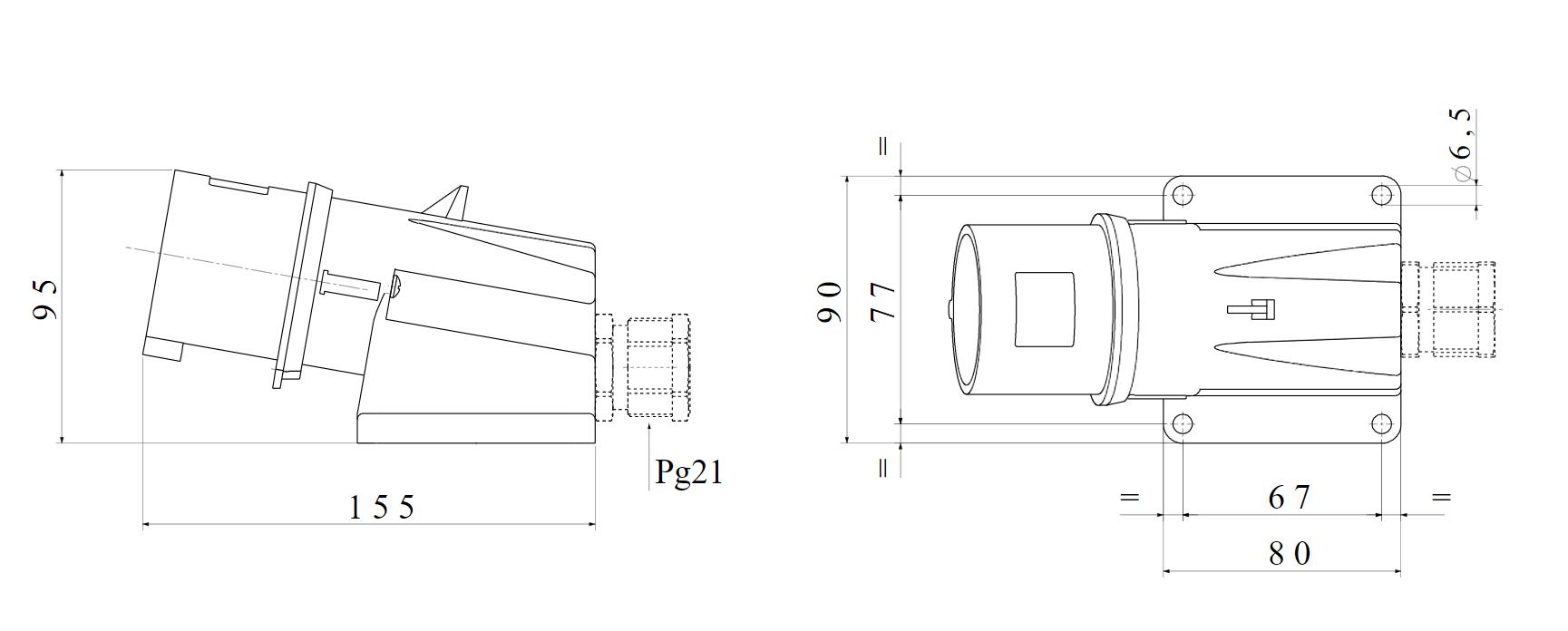 SPINA FISSA DA PARETE A 90° - IP44 - 3P+N+T 32A 480-500V 50/60HZ - NERO - 7H - CABLAGGIO A VITE