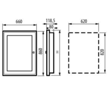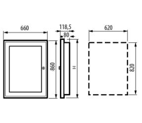 Quadro da incasso in lamiera con portello con cristallo - per 96 moduli DIN su 4x2 file