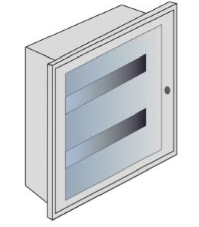 Quadro da incasso in lamiera con portello con cristallo - per 24 moduli DIN su 2 file