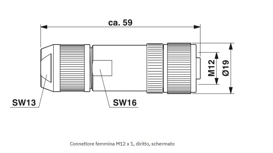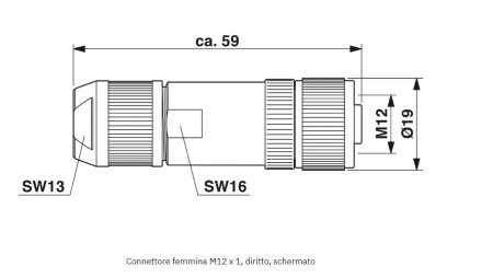 CONNETTORE M12 6 POLI SCHERMATO FEMMINA DRITTO