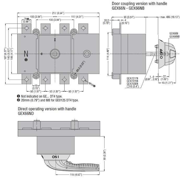 Interruttori sezionatori quadripolari, per applicazioni fotovoltaiche, esecuzione comando diretto e blocco porta, 250A