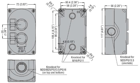 LOVATO Stazione di controllo, vuota senza attuatori, per 2 attuatori. Copertina grigia