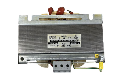 Trasformatore con tensione primaria 230/400 V, tensione secondaria 12/24 V, potenza nominale 1600 VA