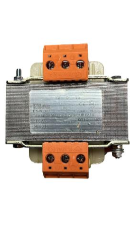 Trasformatore di sicurezza 100 VA, ingresso 230/400 V, uscita 12 – 0 – 12 V.