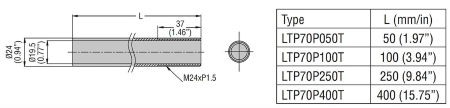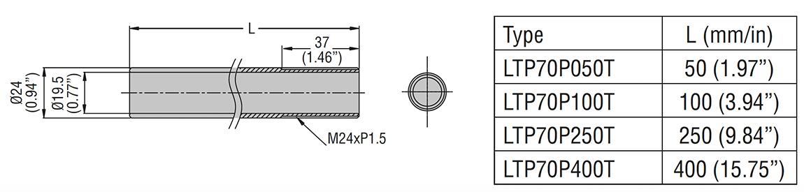 TUBO DI PROLUNGA 250MM CON FILETTO X BASE 70MM