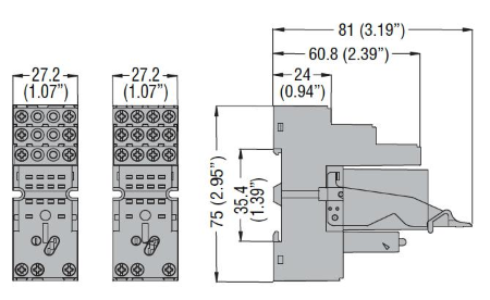 ZOCCOLO PER RELE' 4 CONTATTI IN SCAMBIO PER MONTAGGIO SU GUIDA DIN O A VITE, TERMINALI A VITE, TERMINALI CONTATTI TUTTI SUL LATO SUPERIORE