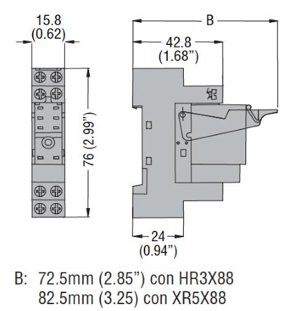 Zoccolo per rele' per montaggio su guida DIN o a vite, terminali a vite