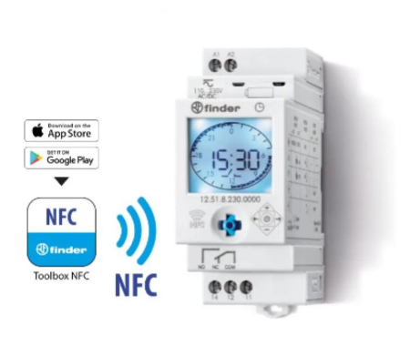 INTERRUTTORE ORARIO DIGITALE NFC GIORNALIERO/SETTIMANALE 1 SCAMBIO 16 A FINDER