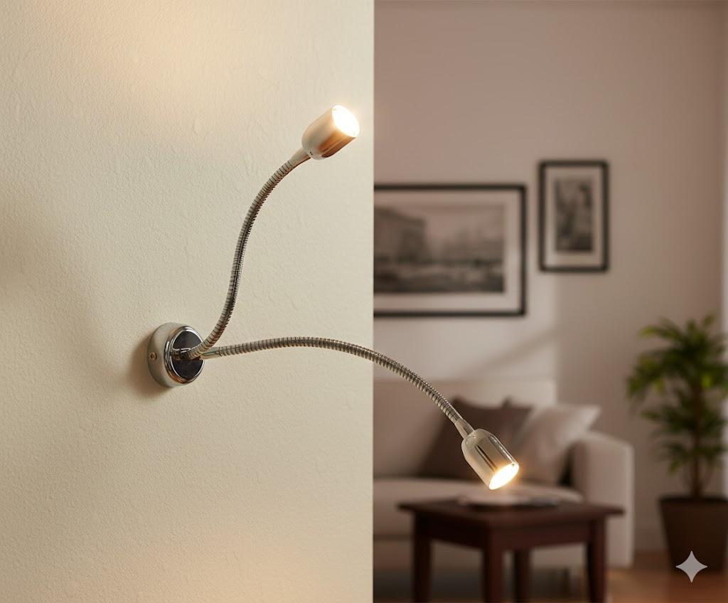 Braccio Flessibile Orientabile Il punto di forza di questo apparecchio è il suo braccio snodabile in metallo cromato con finitura lucida, che permette di dirigere la luce esattamente dove serve. La struttura flessibile garantisce infinite possibilità di regolazione, ideale per lettura, illuminazione d'accento o luce ambientale.