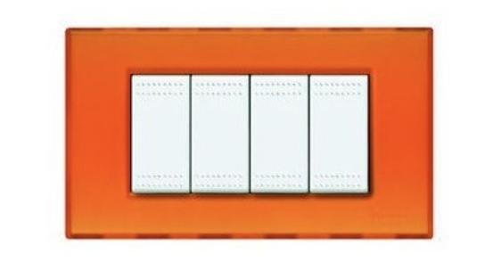 PLACCA 4 POSTI ARANCIO GEL SERIE LIGHT – BTICINO LEGRAND N4804AJ