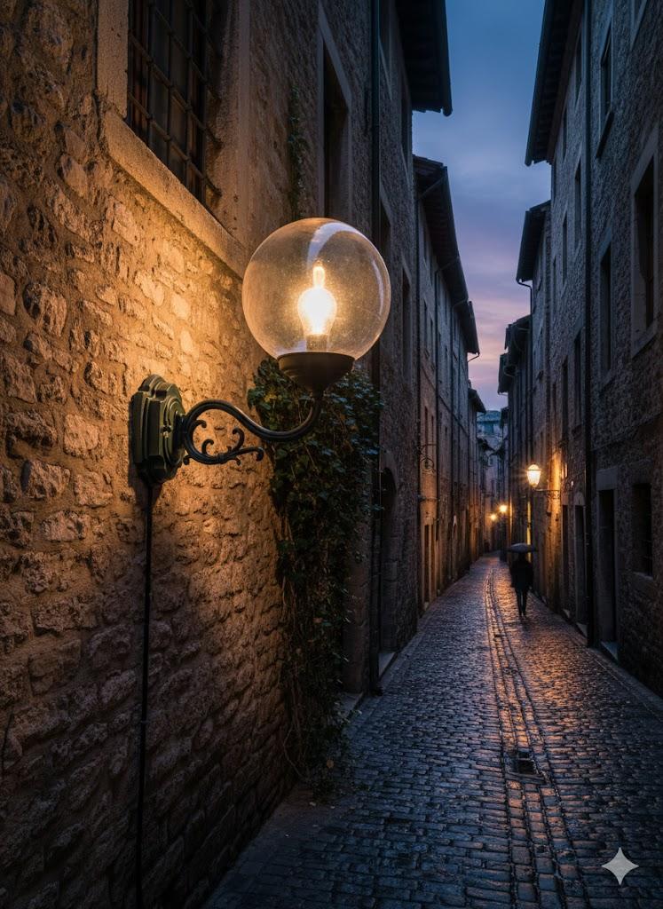 monta una lampada attacco e27 max 75W, con possibilità di utilizzare lampade led (consigliato diametro 60mm - altezza 150mm) o fluorescenti da 20/23W.