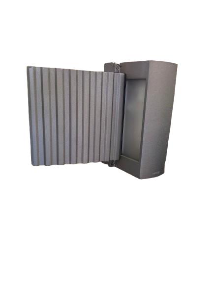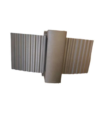 Realizzata in materiale di alta qualità con finitura metallica satinata, presenta un corpo centrale arrotondato e alette laterali con texture ondulata, che diffondono la luce in modo elegante e uniforme.