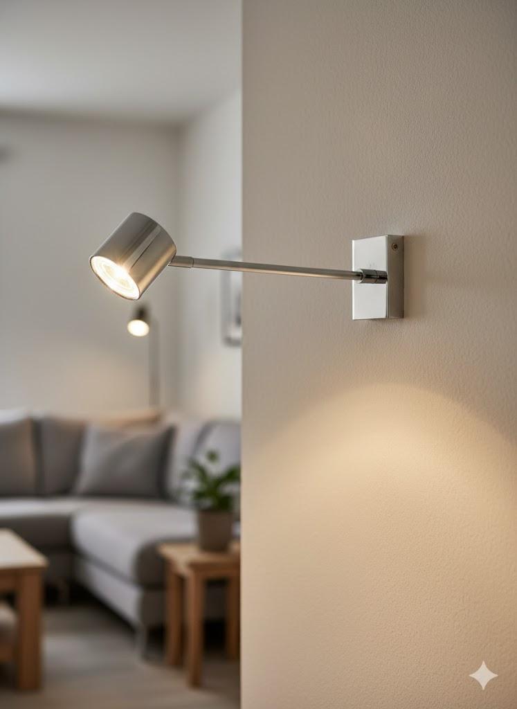 "Orientabile: Sì - il braccio direzionabile consente di orientare il fascio luminoso dove serve