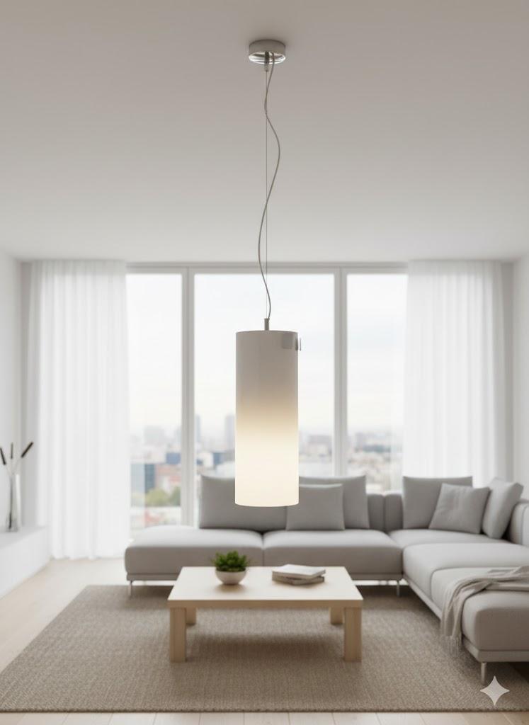 SOSPENSIONE IN VETRO ACIDATO BIANCO DIAMETRO 12 CM ALTEZZA 30 CM 1XE27